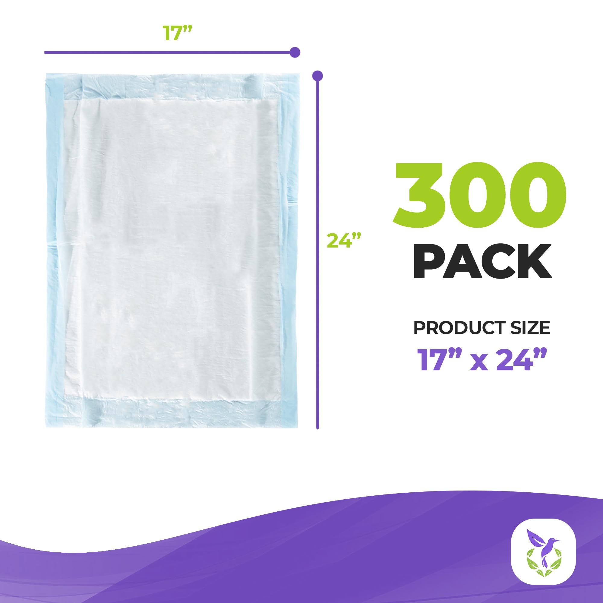 Underpads 17 X 24. Pack of 300 Disposable Fluff/Polymer Underpads for Incontinence