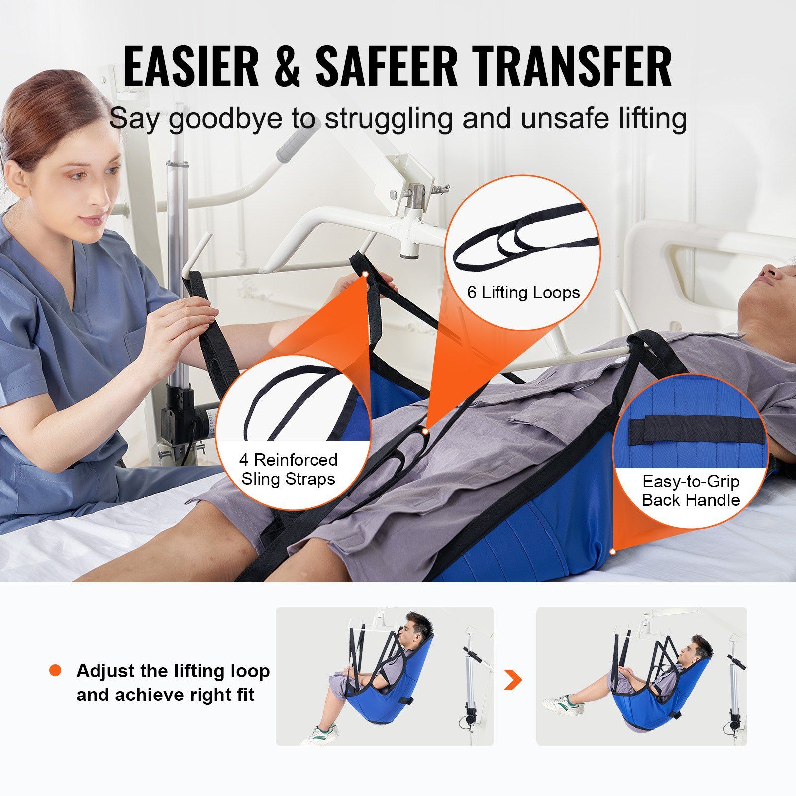Optimize nursing efficiency with VEVOR u shape patient lift sling, designed to support up to 600 pounds and provide unparalleled stability with its U-shaped head support. Ideal for patients with limited head control, this transfer sling ensures effortless and safe lifting with reinforced straps.