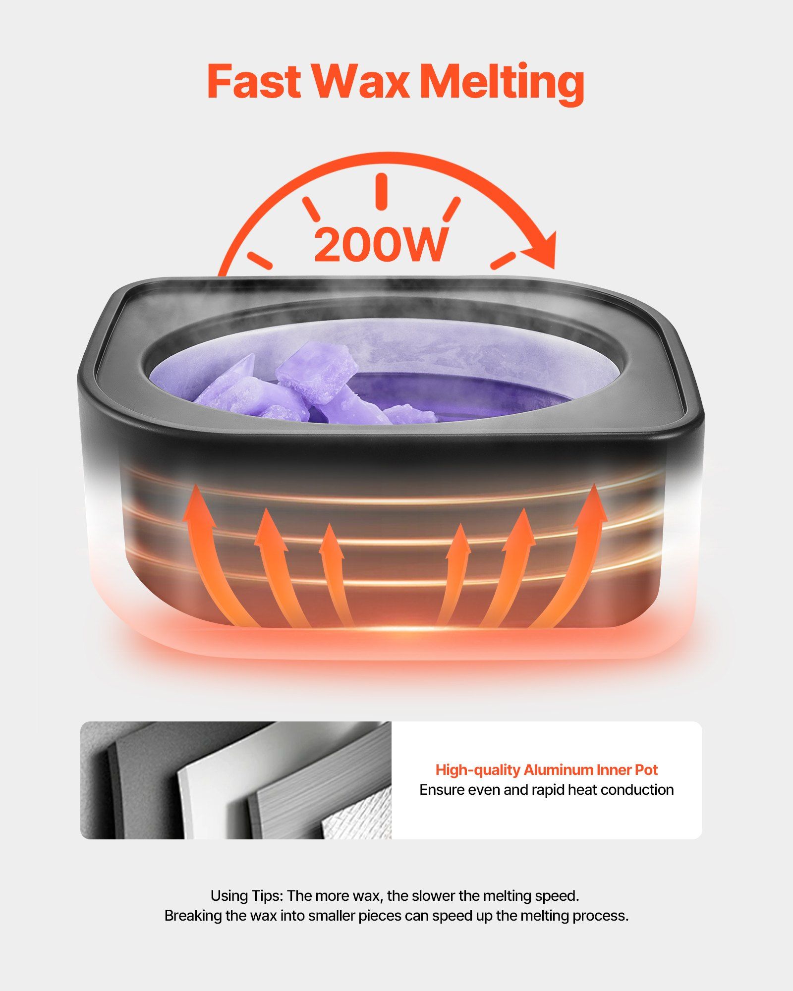 The premium aluminum inner pot delivers rapid, uniform heat for fast wax melting wax. It's durable, easy to clean, and designed to provide consistent spa-quality results.