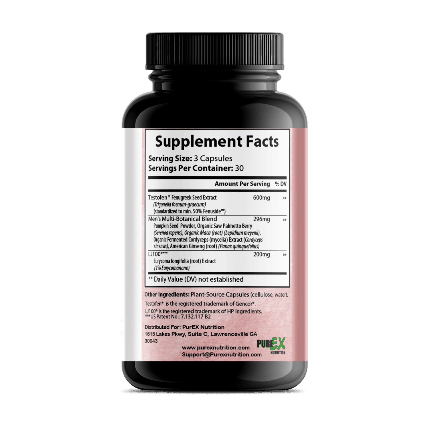 Testofen ® was also added to Pure Testosterone. Testofen ® is a patented specialized saponin glycoside extract from Fenugreek(Trigonella foenum-graecum seed) by Gencor™. Testofen® has been shown to significantly increase free testosterone in a 12 week trial at 600mg dose. This may be due to the inhibition of aromatase and 5α reductase, reducing the conversion of testosterone to estrogen and dihydrotestosterone, leaving more total testosterone. Free testosterone is the most important testosterone because it is the only usable testosterone in the body.