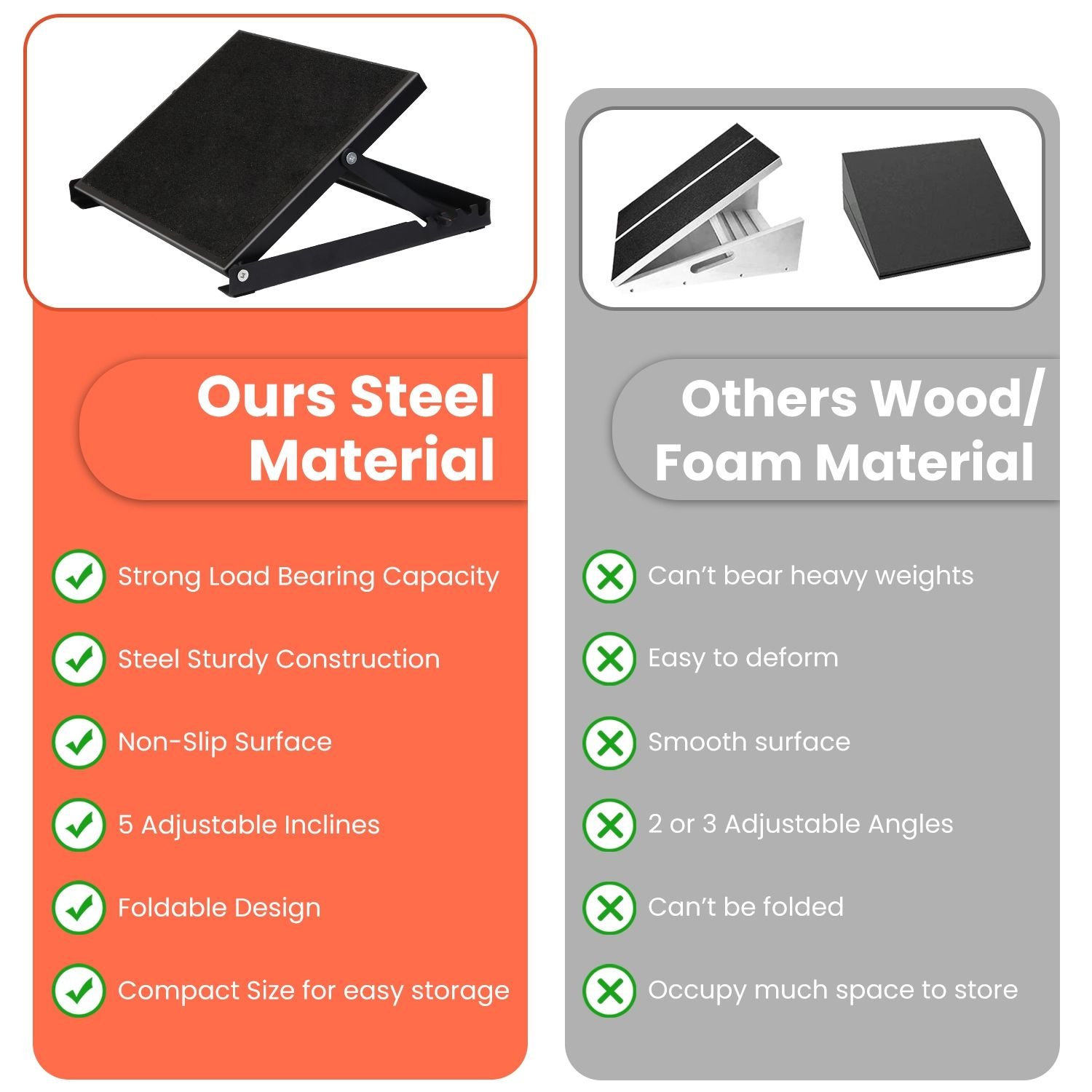 *Sturdy Steel Construction*:Constructed by rustproof,study and durable steel,the most stable triangular structure makes our steel slant board reliable,shaking-resistant and deform-resistant,can support up to 500lbs load bearing capacity. A perfect substitute for plastic or wood calf stretcher.